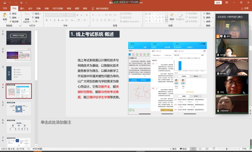 然后,通过学习教务处下发的线上考试系统介绍等相关文件,结合本教研室所授课程的具体情况,讨论确定了本学期缓补考和期末考试的考试形式和考试内容。最后,廖立老师就教研室新开设公选课程《古今化学谈》的教学实践介绍了自己的经验体会和遇到的问题,教研室全体老师均提出了很好的建议以促进该课程的建设。