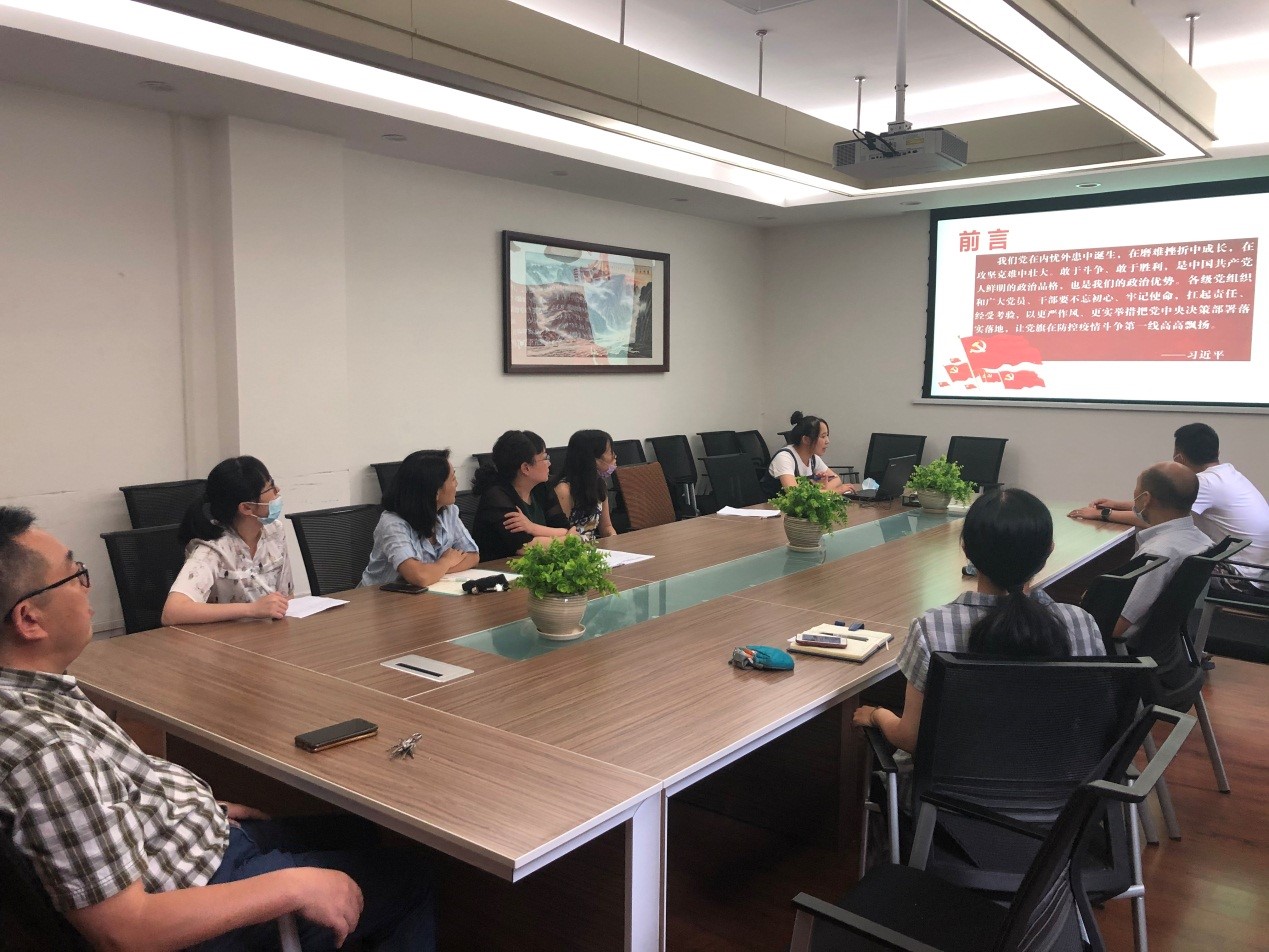 为庆祝中国共产党成立99周年,深入贯彻落实全国“两会”精神,7月14日下午4点,学院行政党支部在望江校区西二教227会议室组织开展了“学习党的历史,讲述战疫故事,牢记共产党人使命担当”主题党日活动。本次会议由行政党支部书记高敏同志主持。