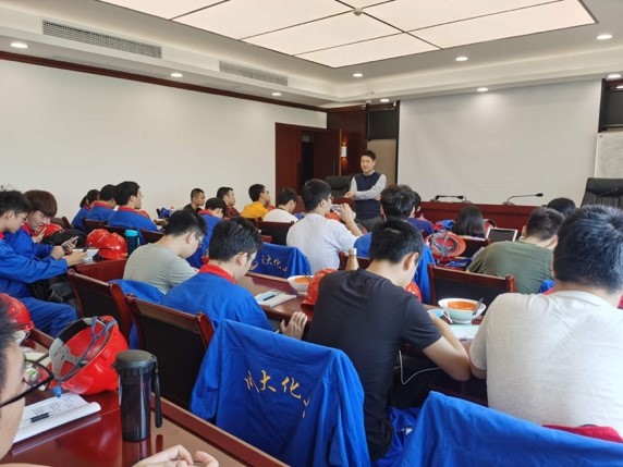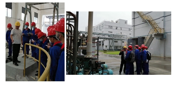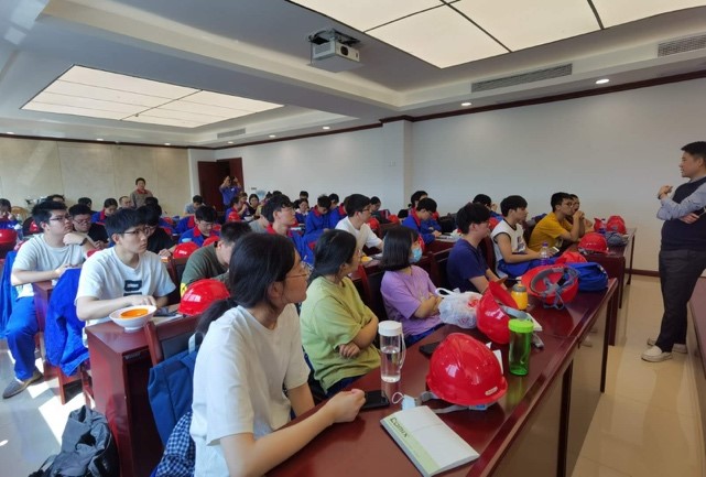 郭孝东副经理到达现场后,首先详细了解了同学们的生活和学习情况,对生产实习的认知和感受。随后,郭老师跟同学们强调了生产实习的重要性,希望同学们能珍惜实习机会,将课堂所学理论知识和现场设备、工艺等环节有机结合,多向有经验的工程师交流学习,提升自己发现问题、解决问题的工程实践能力。其次,郭老师提出化工行业是国民经济不可或缺的重要组成部分,鼓励大家继续深造,努力学好专业知识。最后郭老师提醒大家在实习现场一定要注意安全,一切行动听指挥,牢记学校和企业的安全培训,戴好安全帽,注意脚下。郭老师还同鼎盛锂业综合部田部长就化工专业本科生实习进行了深入交流,感谢公司为同学们提供宝贵的实习机会和细心指导,就每天的实习安排进行了充分讨论。