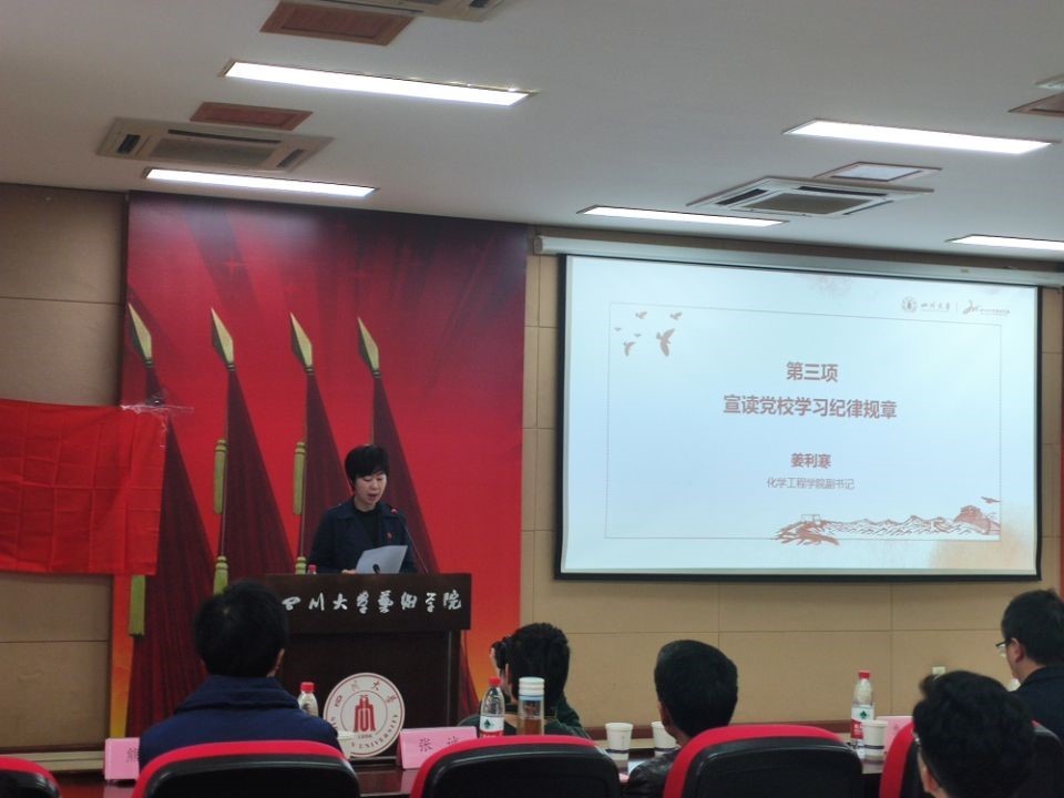 2020年11月14日上午10:00,在bb贝博艾弗森官方网站江安校区艺术学院A1楼11教室成功举办了ballbet贝博官方网站、艺术学院、空天科学与工程学院、建筑与环境学院联合党校第149期发展对象培训班开班典礼暨第一讲。此次开班典礼有幸邀请到化学工公司党委副书记姜利寒老师和党校指导教师李珍珍老师,此外还邀请了艺术公司党委书记熊伟教授、党委副书记杨梅老师和空天科学与工程公司党委副书记季袁冬老师等。其中姜利寒副书记宣读了党校学习纪律规章。