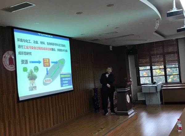 曹宏斌研究员介绍了国内水体污染总特征,就污水处理技术发展现状,从科学层面提出“污染源解析-清洁工艺-无害处理-优化集成”的新思路。结合实际生产,就如何采用化学与生物法相结合强化污水处理、全过程控制的理论、优化异味控制等方面进行详细阐述。目前课题组主要采用化学与生物法相结合,进行工业污染全过程控制的理论、关键技术与应用研究,已分别在“工业氮硫钒铬钼废弃物资源化再生循环”、“电子废弃物资源化”和“难降解有毒有机物污染物的强化处理”等领域取得长期工作积累和标志性成果,其中“煤化工废水全过程低成本深度处理与脱盐”、“含重金属氨氮废水资源化与无害化”和“钒铬废渣资源化与无害化”全部获得工业应用,累计建成示范工程50余套。课题组设计了多套完全拥有自主知识产权的新型装备,这些关键设备的使用在创造了国内多个第一的同时也取得了较好的经济效益,达到了经济发展与环境保护的协调。学术报告结束后,师生踊跃提问,曹宏斌研究员耐心一一作了解答。