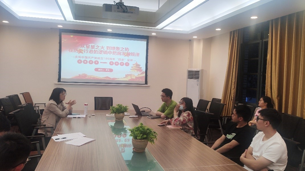 学史明理、学史增信、学史崇德、学史力行,弘扬爱国主义精神,传承红色革命精神。2021年5月13日,ballbet贝博官方网站研究生第一党支部在bb贝博艾弗森官方网站227会议室举办了庆祝中国共产党成立100周年“四史”宣讲活动。本次活动邀请bb贝博艾弗森官方网站“四史”学习教育博士宣讲团、bb贝博艾弗森官方网站2019级博士研究生罗杰同志为本次活动宣讲,宣讲活动由支部书记李颖丽同志主持。