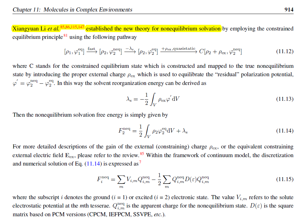 非平衡溶剂化新理论在Q-Chem5.4用户手册中的部分理论介绍
