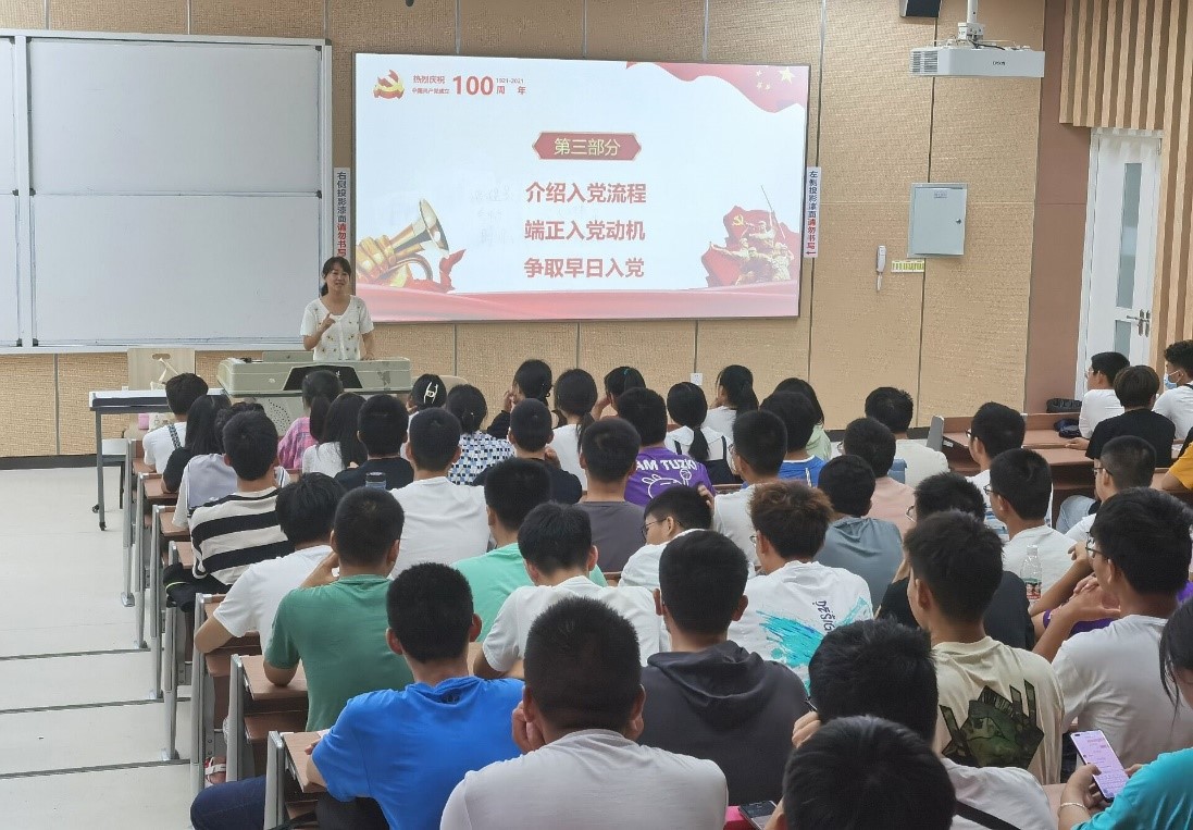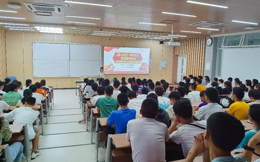 图1.李珍珍老师对2021级新生开展理想信念教育