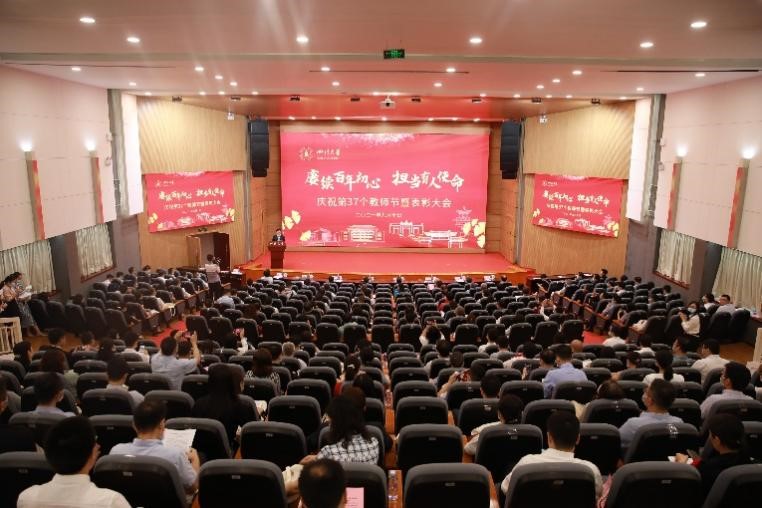 赓续百年初心,担当育人使命。为深入学习贯彻习近平总书记给全国高校黄大年式教师团队代表回信精神,激励全校教职员工向黄大年同志等优秀教师学习,立德树人,做大先生,9月10日,学校在望江校区笃行楼召开庆祝第37个教师节暨表彰大会。公司党委书记王建国、董事长李言荣等全体校领导,高洁院士,杰出教授曹顺庆、罗志田、钟本和、詹石窗等高层次人才,机关各部处及业务实体主要负责人,各学院书记、经理,2021年先进集体和先进个人,2021年“立德树人奖”获奖教师,2020年度宝钢奖获奖教师,2021年“未来教学名师奖”获奖教师、第七届“姜维平优秀教学奖”获奖教师、第八届“卓越教学奖”获奖教师、离退休教师代表和员工代表参加大会。会议由副董事长张林主持。