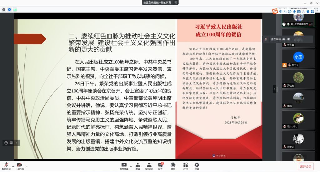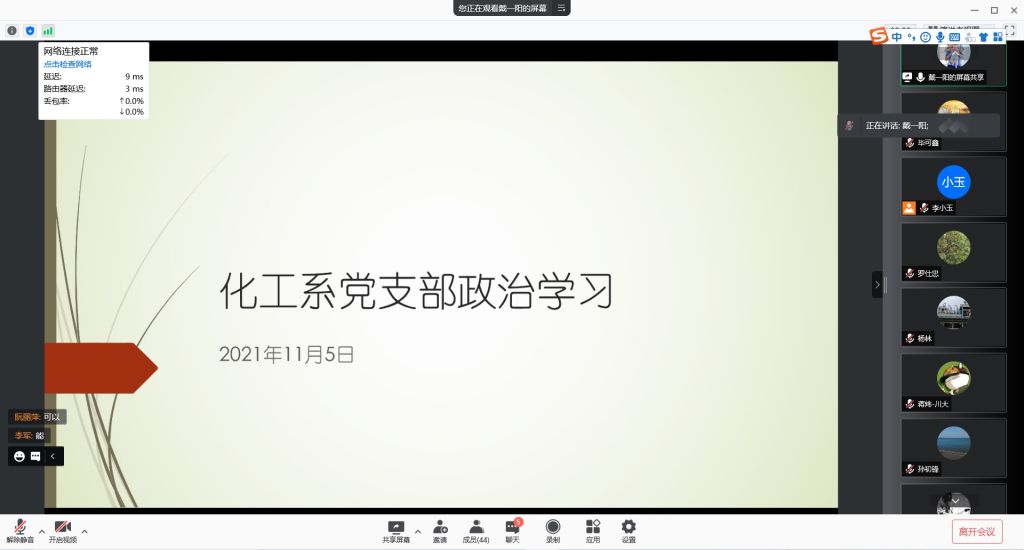 在成都市新冠病毒防疫形势下,bb贝博艾弗森官方网站化学工程系全体教师于2021年11月5日下午通过腾讯会议开展了的政治学习和组织生活。化学工程系党支部书记谢锐同志主持了本次政治学习和组织生活,系统工程党小组戴一阳同志负责领学了政治学习文件,系主任袁绍军同志进行了业务工作研讨。