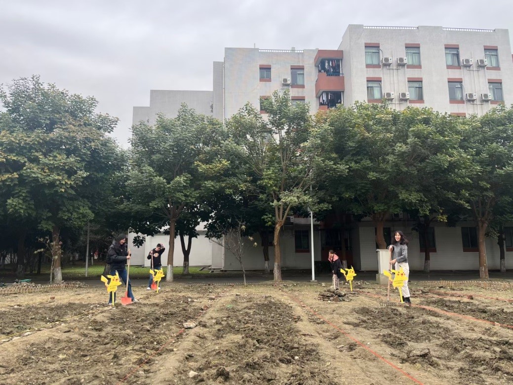 面对一块全新未开垦过的土地,充分发挥全员育人的功效,辅导员老师们、教导员和员工们一起摇身变为“劳动小能手”。辅导员李珍珍、雷金凤、李忆雯和付率老师们主要负责分区划块,将每一块责任田分到所属班级和同学中。教导员李川娜老师充分利用曾经在农村当知青的经历和经验,为同学们做示范指导并手把手地教员工如何省力、从哪个方向才能更快速的松土。最后员工们开始沉浸式劳动,有的同学捡石头,有的同学松土,有的同学撒种子、浇水,即使满头大汗,即使腰酸背痛,大家都毫无怨言。经过几天的辛勤劳作,荒废的土地不仅种满了豌豆种子,并且洒满了同学们劳动的汗水。员工们纷纷表示从李川娜老师身上看到了老一辈劳动人民的缩影,他们风吹日晒,任劳任怨,十年如一日,耕耘在他们的土地上,春天他们播种,秋天他们体会丰收的快乐。正如诗中所言,“谁知盘中餐,粒粒皆辛苦”,员工们借着这劳动机会,体会粮食的来之不易,在以后的生活中戒掉铺张浪费的坏毛病,传承劳动美德,用勤劳的双手创造美好生活。