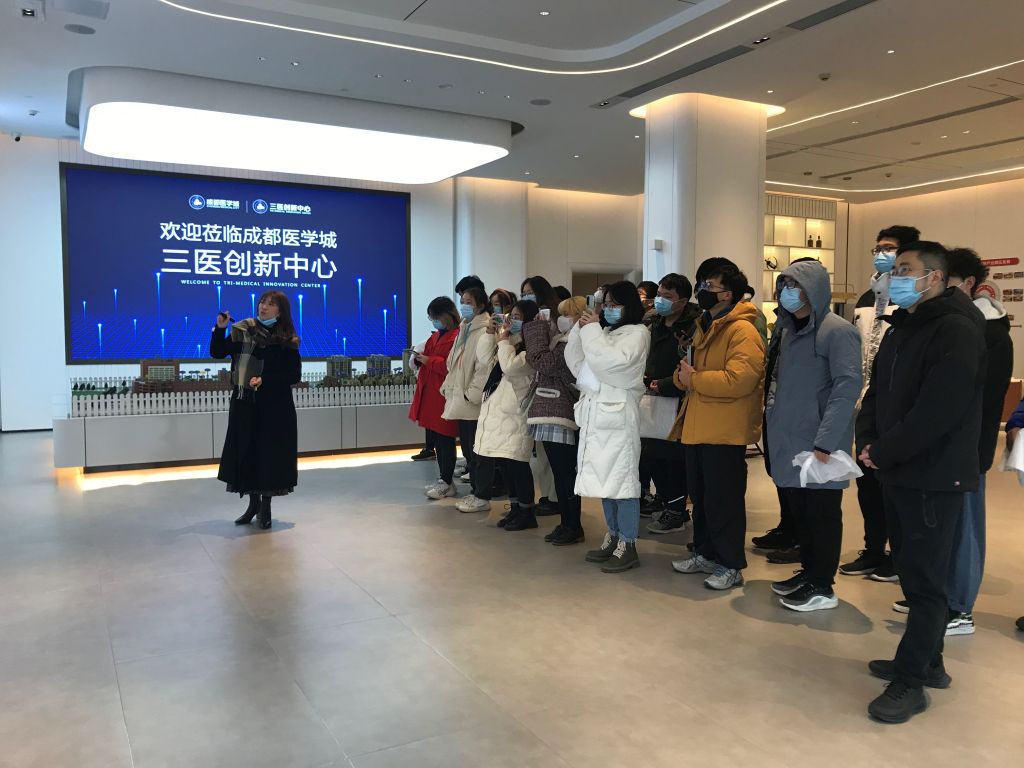 在12月27日的三医创新中心参观中,园区讲解员首先向师生们介绍了成都医学城的产业政策、园区规划理念、相关企业入驻情况;接下来带领师生先后参观了康城生物、峰际生物两所生物相关企业。