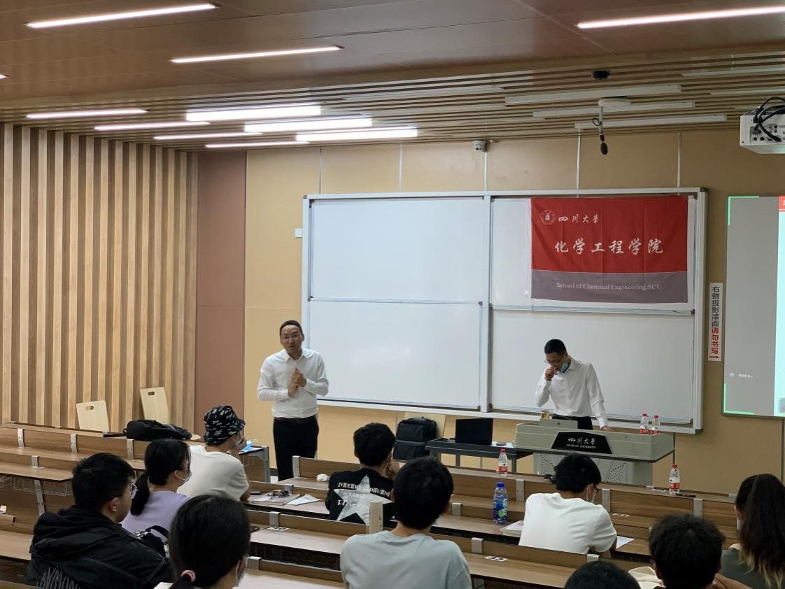 讲座伊始,赵经理首先着重剖析了第一部分——“川大化工人的‘四个面向’”。他提到,习近平总书记在主持召开科学家座谈会时提出,“广大科学家和科技工作者肩负起历史责任,坚持面向世界科技前沿、面向经济主战场、面向国家重大需求、面向人民生命健康,不断向科学技术广度和深度进军。”赵经理启示我们,要深刻理解与把握时代潮流和祖国需要,以真才实学服务人民,以创新创造贡献国家。此后,赵经理为我们讲解了川大化工的办学理念。张洪沅先生曾言,公司的办学思想为“立足基础,面向工业,服务社会。”以此思想为蓝本,公司秉持并发扬了“以人才培养为主线,以工程教育为特色,以服务社会为宗旨”的办学道路。先生之风,山高水长。一代代化工人续张洪沅先生之精神,传薪续火,在公司七十年峥嵘岁月中汲取奋进力量,走好新时代的化工路。