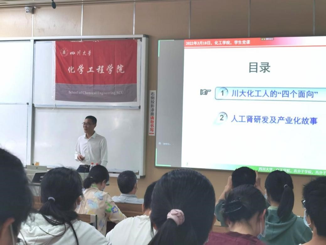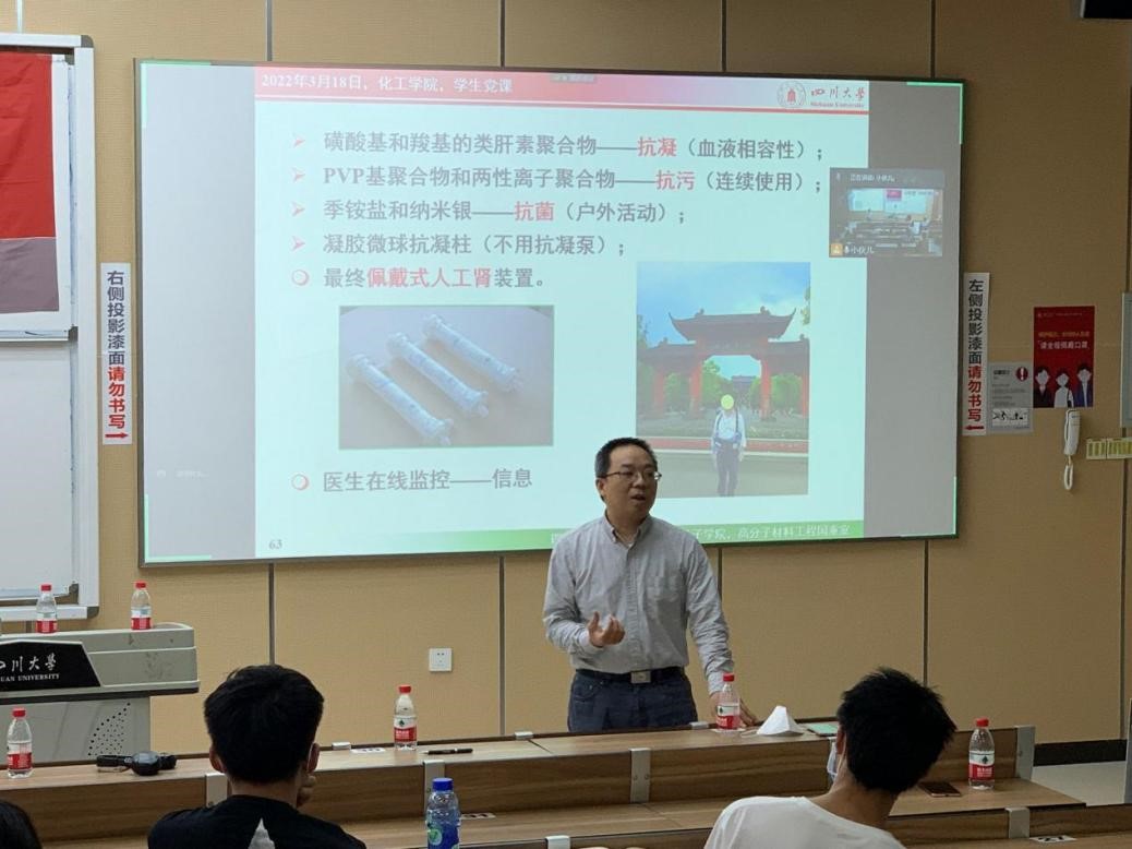 赵经理讲授完毕后,唐盛伟副经理肯定并高度赞扬了赵经理在“可穿戴式人工肾”研究上的付出与卓著成果,激励川大化工学子以赵经理为代表的上一辈化工人为榜样,积极践行习近平总书记对青年提出的要求,“在感悟时代、紧跟时代中珍惜韶华,按照党和人民的要求锤炼、提高自己,志存高远、德才并重、情理兼修、勇于开拓,在火热的青春中放飞人生梦想,在拼搏的青春中成就事业华章”。
