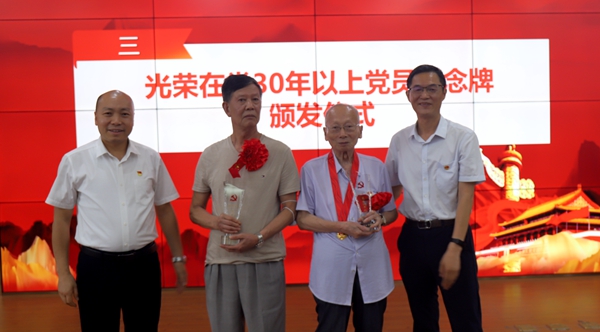 随后,大会举行了“光荣在党30年”纪念活动。李天友书记和赵长生经理为党龄满30年的党员代表颁发了纪念牌。