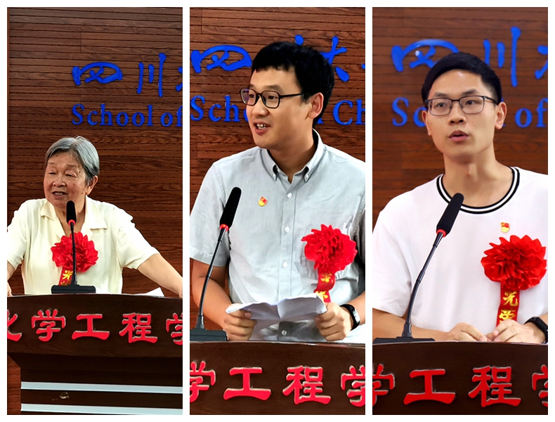 全国高校黄大年式教师团队负责人、bb贝博艾弗森官方网站杰出教授、老党员钟本和教授作为“优秀共产党员”代表发言,带领大家一起回顾了曾经的入党初心和开展“料浆法磷铵”技术攻关的困难和坚持,并表示会永远保持学习的热情,离休不离岗,做一颗永不生锈的螺丝钉,生命不息、奋斗不止,继续为学院做出新的贡献;优秀党务工作者代表、青年教师谭帅同志从坚定理想信念、牢记立德树人使命和提升业务水平与科研能力等方面表示要以“四有”好教师为标准,不忘教育初心,坚守教师使命;先进党支部代表、研究生过程装备与安全科学党支部书记邓松同志结合“全国百个研究生样板党支部”的创建过程,分享了支部“有政治高度、有凝聚力度、有服务精度、有育人深度”的“四有制度+”建设理念和实践,并表示会努力让支部成为滋养党员成长成才的沃土,培养更多优秀党员。