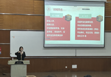 李颖丽老师首先为同学们着重介绍了学院研究生管理情况以及服务员工工作的重要时间节点,使同学们对于辅导员工作、学籍老师工作以及各系办老师的工作有了进一步的了解。同学们深刻意识到,研究生生活的有序进行,离不开辛勤工作的老师。随后,李颖丽老师向大家介绍了学校员工工作相关部门的职能以及其所在位置,如研究生院、党委员工工作部、保卫处、校医院等,给行政事务处理一头雾水的同学们指点了迷津,提高了同学们的问题解决效率并保证了同学们在必要时能够获得相应的帮助。员工工作基本情况介绍完毕后,李颖丽老师向同学们解读了《研究生手册》中的相关国家法律与校级校规,如校外住宿相关条例、员工寝室安全管理规定等内容,并提醒同学们,一定要仔细阅读《研究生手册》,尽量做到熟记,切记勿碰“高压线”。李颖丽老师补充强调了树立防诈骗意识及诚信做人的重要性,希望同学们要保护好自己的人身与财产安全,在诚信问题上“勿以恶小而为之”。最后,李颖丽老师为同学们介绍了一些常用信息获取的网址,并告诫同学们,研究生生活短暂而又宝贵,要抓紧当下,完成好学业、科研任务的同时,去积极参与社会活动与学术活动,多结识年轻的朋友,学习做人、做事的方式方法,希望同学们能够成为有追求、有梦想、具有高尚道德品质的真正的“人”。