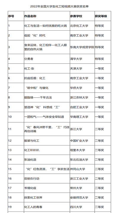 2022年4月至11月,由中国化工学会主办、南京工业大学承办的2022年全国老员工化工短视频大赛已顺利结束。经过初赛、全国复赛、全国总决赛等环节,公司参赛作品《化工人的青春》,讲述的是ballbet贝博官方网站“清一色”车队里的队员们通过微视频,记录了Chem-E-Car比赛的点点滴滴,化工学子为化工、为Chem-E-Car竞赛付出了自己的青春,展现了川大化工青年们的奋斗故事和青春记忆。该作品是由学院“清一色”团队的5名员工制作完成,最终荣获2022年全国老员工化工短视频大赛二等奖。