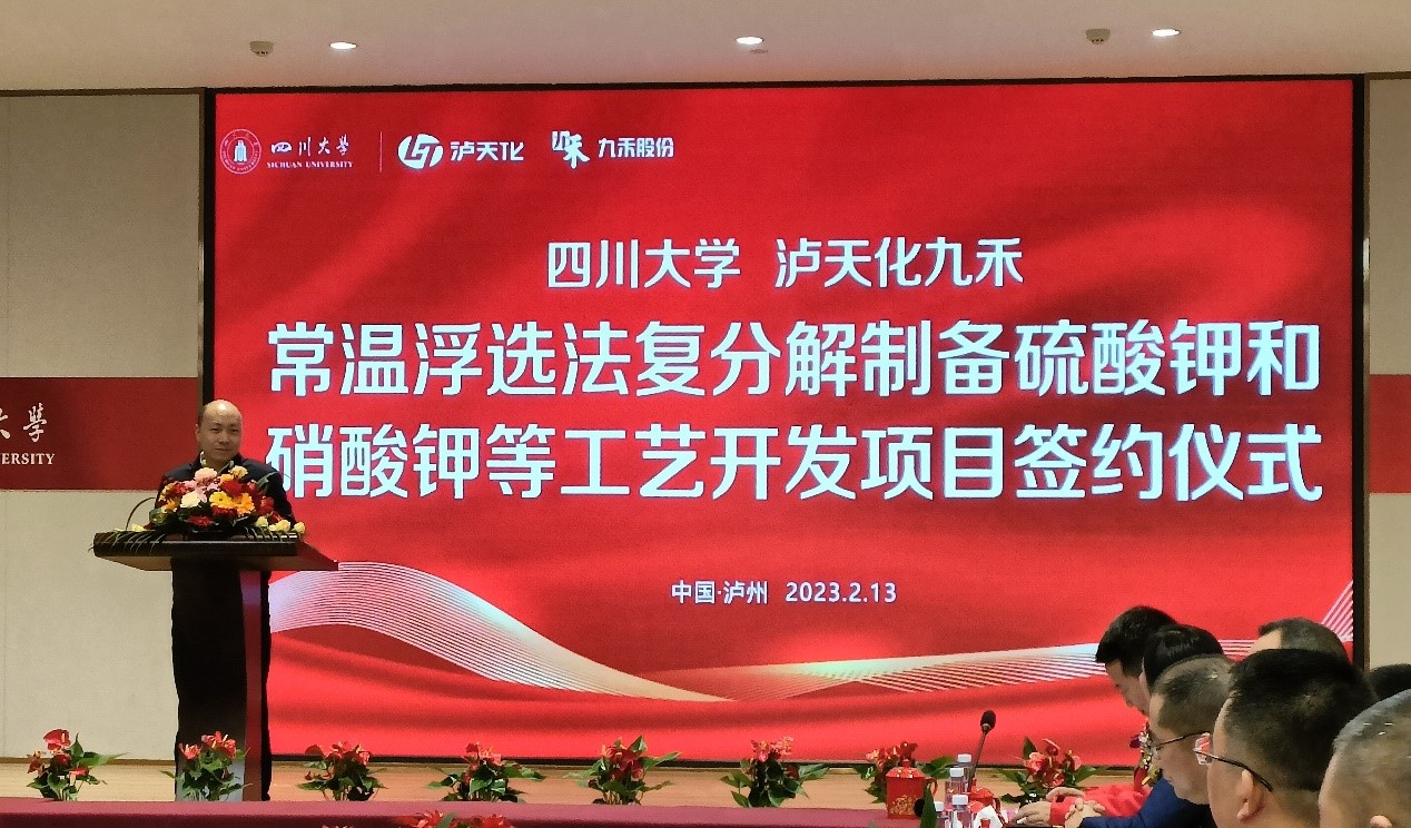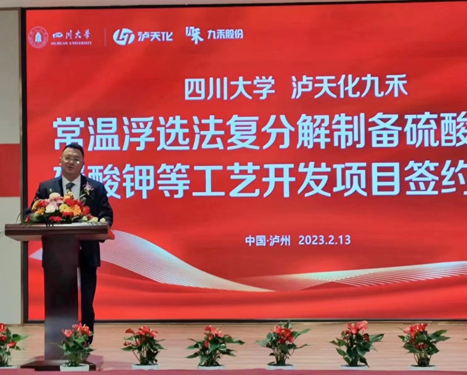 泸天化股份公司赵永清总经理讲话,高度肯定了本次九禾公司和bb贝博艾弗森官方网站的合作,符合目前泸天化集团“三新”发展战略,要实现互利共赢,将科研成果转化为中国农民喜欢的产品。他希望通过本次合作共同建立创新人才培养机制,实现创新成果转化,不断推出科技创新产品。