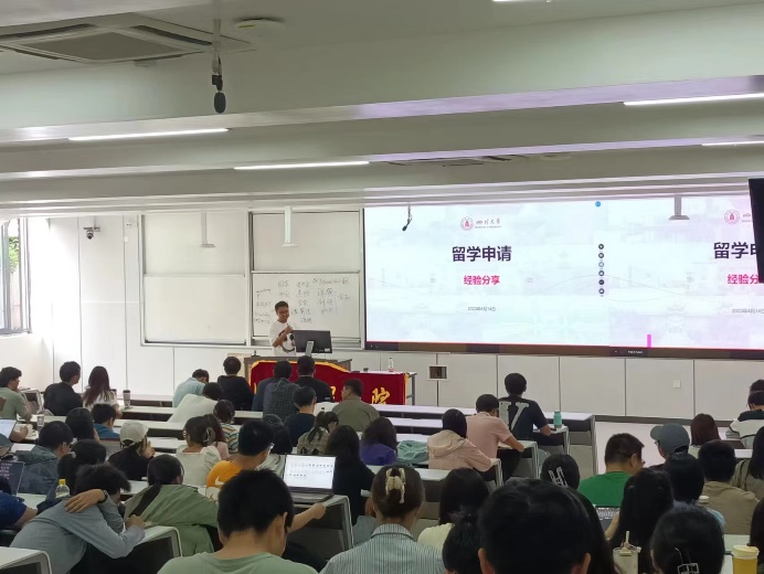 2019级优秀毕业生鲍楚儿,获得明尼苏达大学offer,就自身成功留学的经验进行了十分详细的介绍。鲍楚儿学姐不仅为同学们区分了课硕、研硕以及PHD三种深造学位,同时还从出国留学的要求、如何选校、英语水平要求和申请流程等多个方面讲述了留学的准备事项及注意事项,让到场的同学们对留学的过程有了更加清晰地认识和了解。