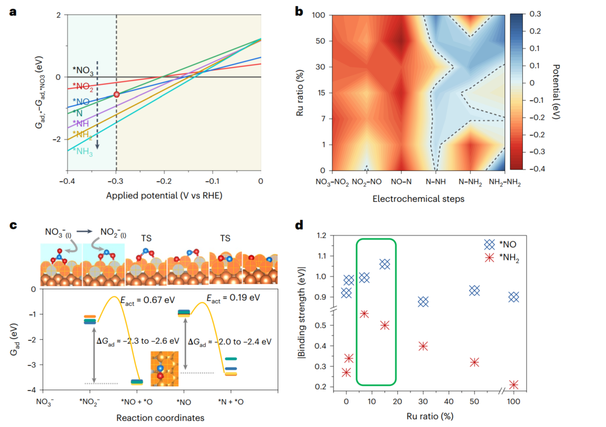 量子化学模拟计算在解析微观尺度上表面催化反应及材料特性等领域中发挥重要作用。近日,公司李红娇特聘副研究员与天津大学张兵教授、于一夫教授团队合作,负责三步接力催化实现超低过位硝酸盐电还原过程的理论模拟工作,以共同一作在Nature Catalysis上发表相关工作论文。