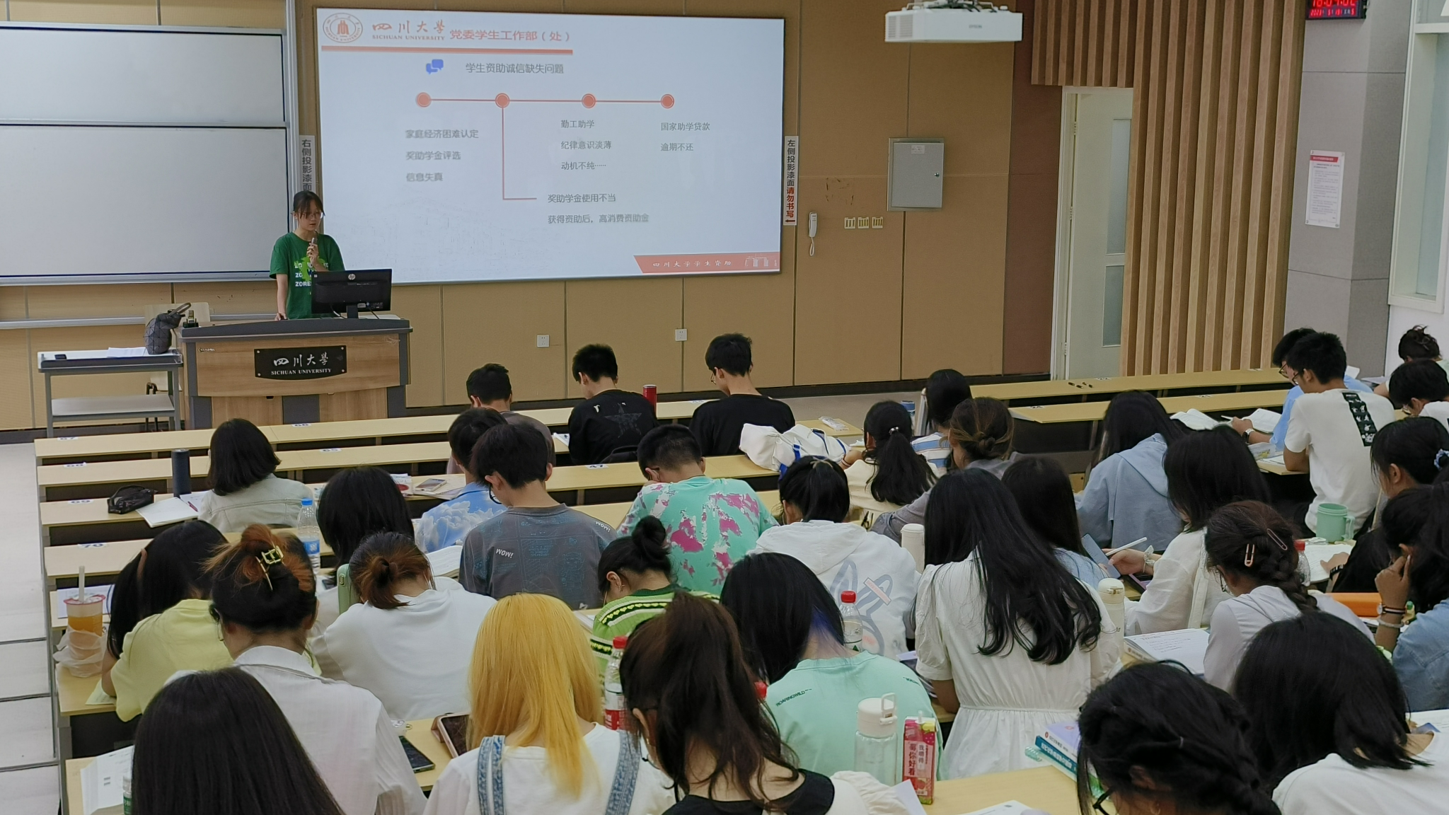 宣讲结束时,李忆雯老师又再次向同学们强调了诚信的重要性,以及资助诚信的必要性。同时也提醒同学们增强对bb贝博艾弗森官方网站员工资助项目的了解,号召大家提高自己在资助方面的诚信意识。