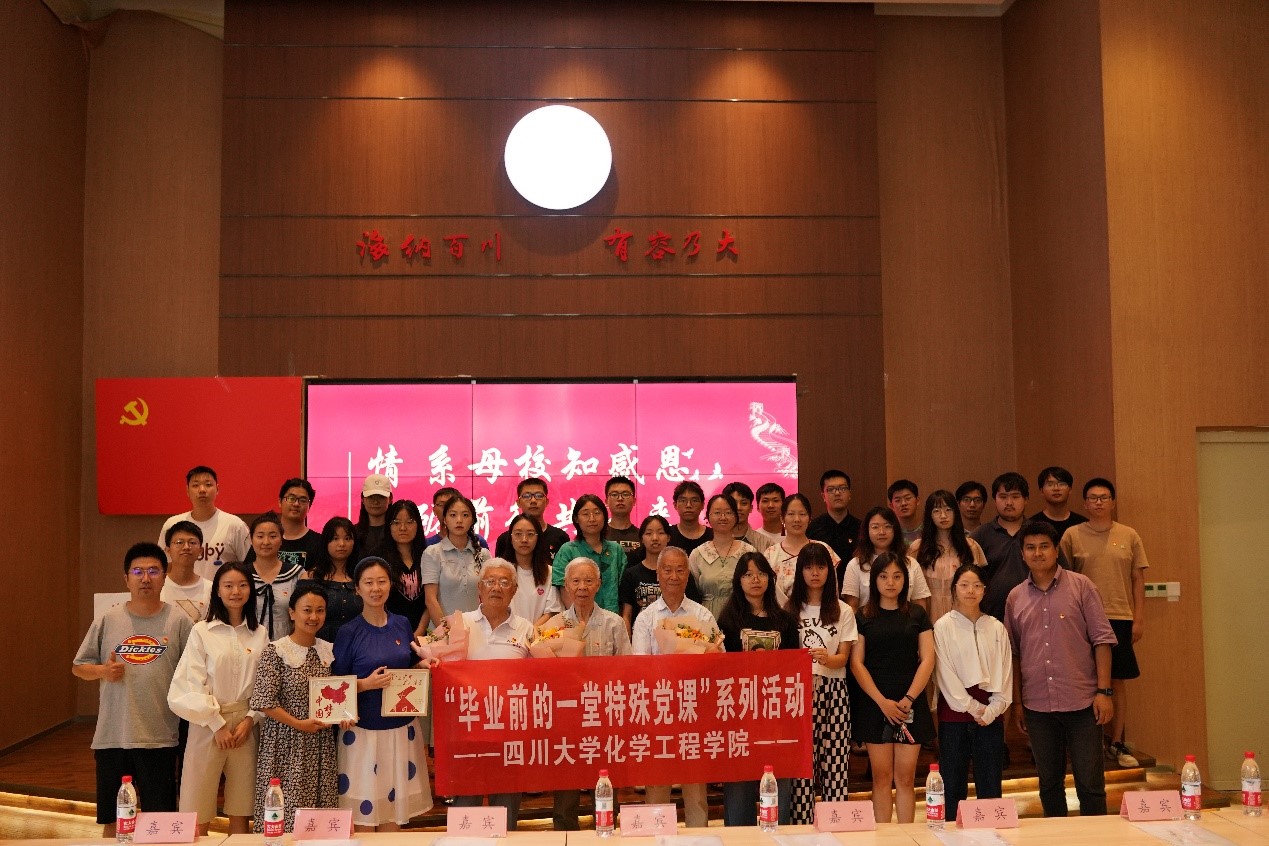 三位耄耋党员教师走上讲台,虽然白发苍苍但依然精神矍铄,结合自身经历,用质朴的语言,真挚的感情,上党课、忆当年、谈今朝。梁明征老师用“天大地大,不如党的恩情大”来号召毕业生党员时刻谨记自己党员的身份,不断奋斗,创造幸福人生!秦自明老师用“感恩在于心,更在于行”来鼓励毕业生党员要感恩母校、感恩老师、感恩陪伴成长的所有川大人!卫永祉老师用“增强文化自觉,坚定文化自信”来勉励毕业生党员在更广阔的舞台上,展现新担当、实现新作为、焕发新面貌!在“毕业前的一堂特殊党课”主题党日活动现场,老教师党员的党课更像一本本“活”的教科书,员工党员纷纷送上花束和红色非遗竹编画,希望大家在走好新时代的赶考路上,汲取丰厚的精神养分和强大的奋进力量。