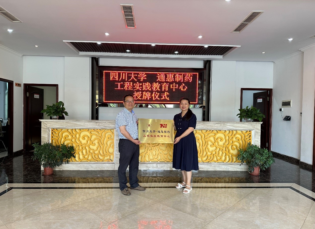 2023年6月27日上午10:00,“bb贝博艾弗森官方网站-通惠药业工程实践教育中心”揭牌仪式在峨眉山通惠制药有限公司隆重举行。通惠制药常务副总经理王晓玲、副总经理李兵、袁波、唐雪枫、ballbet贝博官方网站副经理唐盛伟、制药工程专业负责人李延芳及承强老师参加了此次揭牌仪式。