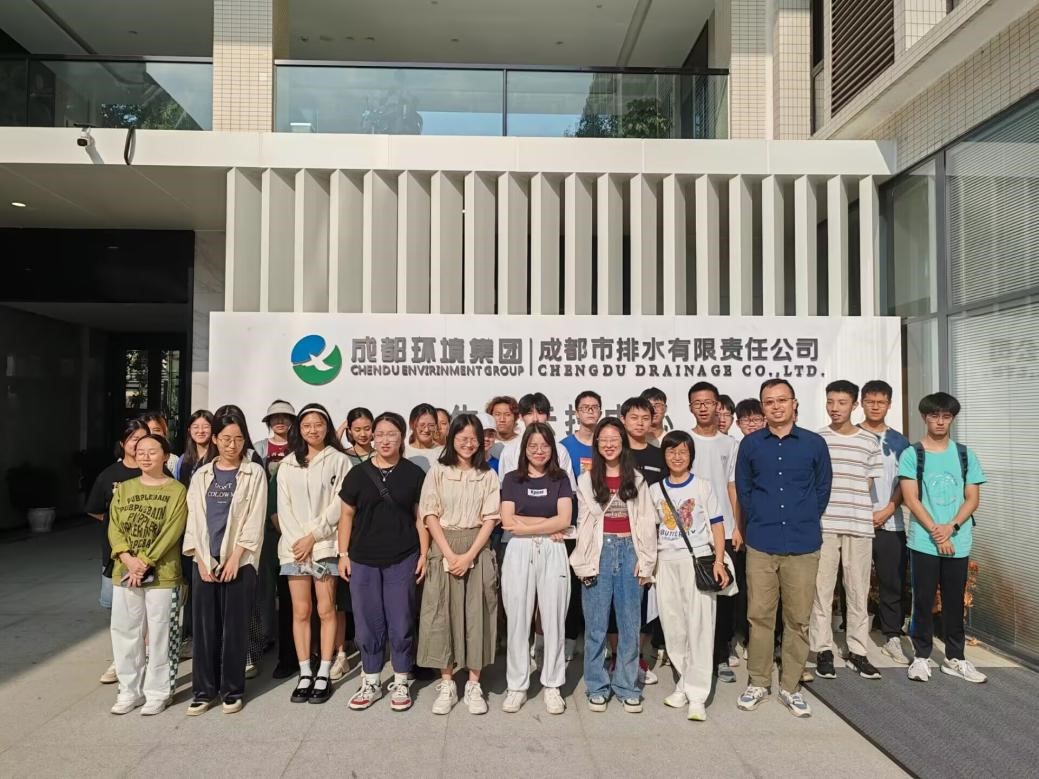 图3:师生在成都市排水有限责任公司前合影