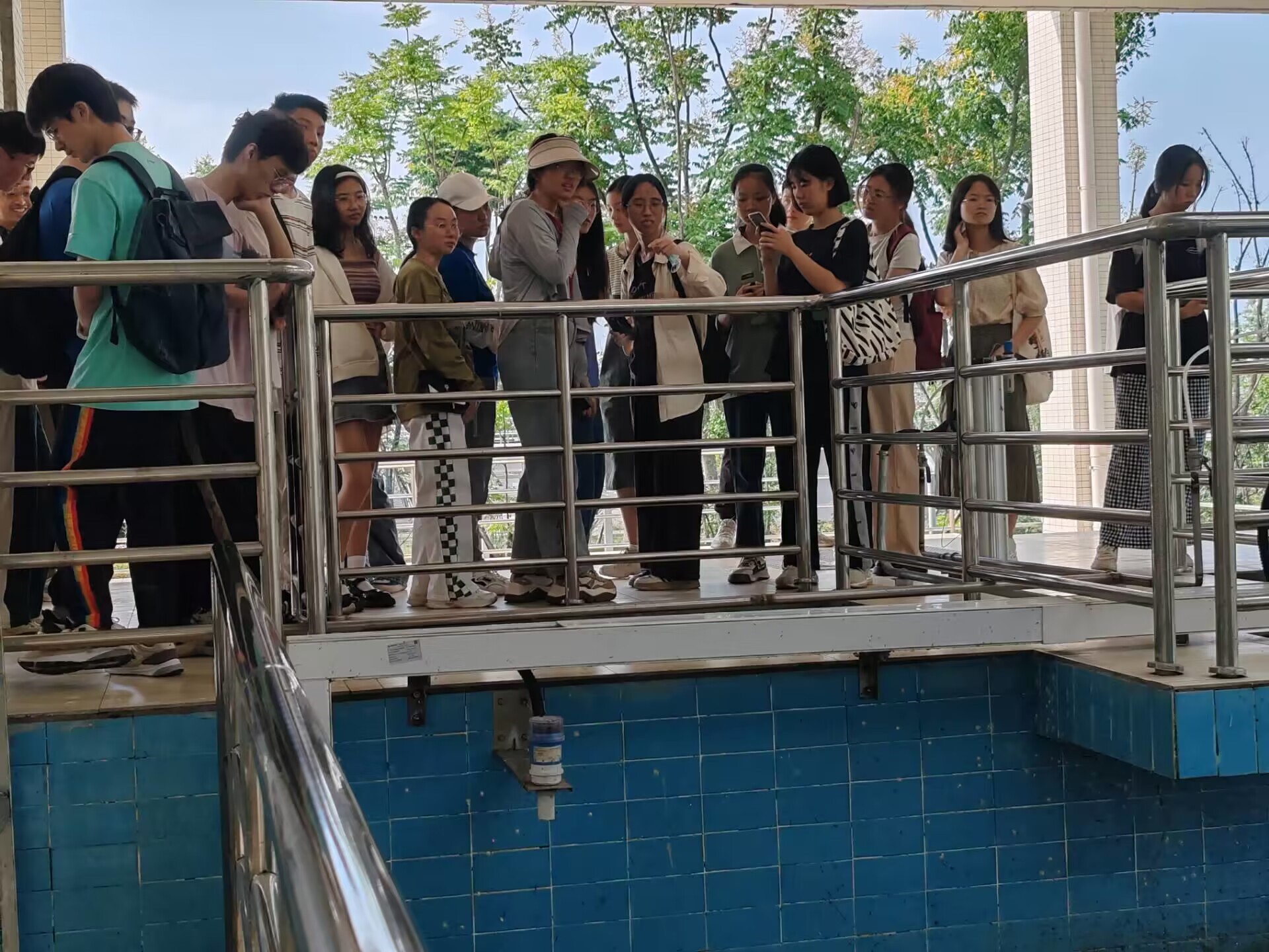 随后讲解员引导大家实地参观各个工作车间并详细介绍了每个工作池的作用机理和工作方式,给同学们带来了与学校实验室全然不同的工程操作体系概念。