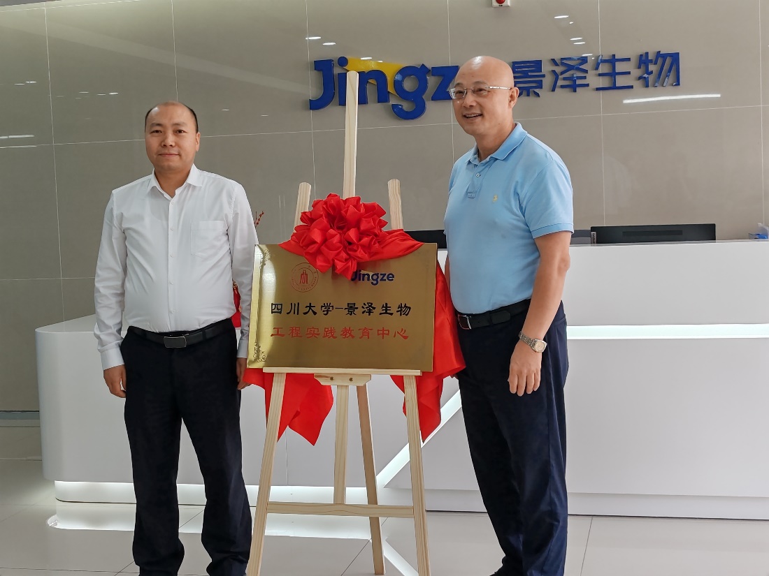 彭红卫董事长向参加仪式的嘉宾介绍了公司发展历程。作为一家成立不到10年的生物医药公司,景泽生物在以彭红卫博士为首的优秀创业团队带领下,发展迅速。公司聚焦于应用生物前沿技术进行创新生物药物、高端生物医学材料的研究开发及产业化,尤其是生殖、眼科与肿瘤疾病治疗领域的新药研发具有特色,掌握的核心技术涵盖了单克隆抗体、重组蛋白、组织工程生物可降解材料等多个领域,目前已有多个产品进入临床阶段,其中一个产品预计将于2024年初获得生产批件。彭总表示,生物医药产业是一个知识密集、人才密集、资本密集、高风险的产业,对于人才的要求较高。公司近年的快速发展离不开十余位川大优秀学子的加入。“工程实践教育中心”的揭牌,不仅为川大莘莘学子提供一个优质的实习平台,同时也标志着景泽生物与bb贝博艾弗森官方网站建立了正式的合作关系。作为一家具有社会责任感的企业,景泽生物非常重视并乐于参与生物医药人才的高等教育,本次携手bb贝博艾弗森官方网站共建工程实践教育中心,期望为我国生物医药行业优秀人才的培养贡献绵薄之力。公司将以此为契机,进一步深化校企双方在人才培养、技术攻关及产品开发等方面的合作,产教融合,高质量打造“生物医药领域卓越工程师”培养示范基地。