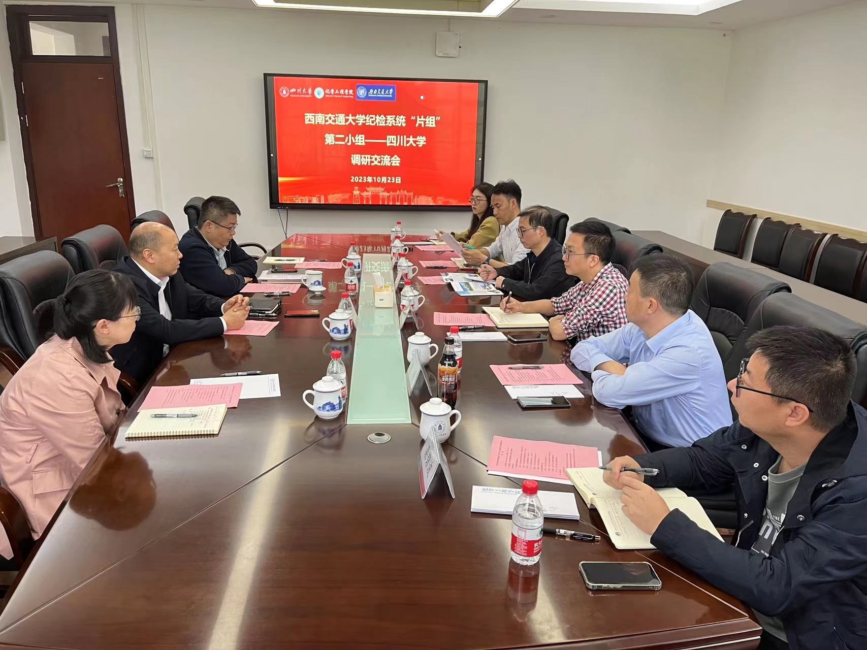 10月23日下午,西南交通大学纪检系统“片组”第二小组来院开展交流座谈。西南交通大学监察处副处长兼纪委办副主任、监督检查室主任杨育鸿,力学与航空航天公司党委副书记、纪委书记孔祥彬,人文公司党委副书记、纪委书记郭立昌,数学公司党委副书记、纪委书记黄祥、力学与航空航天学院专职组织员梁碧波和人文学院团委副书记刘晗悦参加会议,bb贝博艾弗森官方网站化学工程公司党委书记李天友,党委副书记兼纪委书记李德富,综合管理科科长杨谨瑗和党建科科长高敏参加调研会。