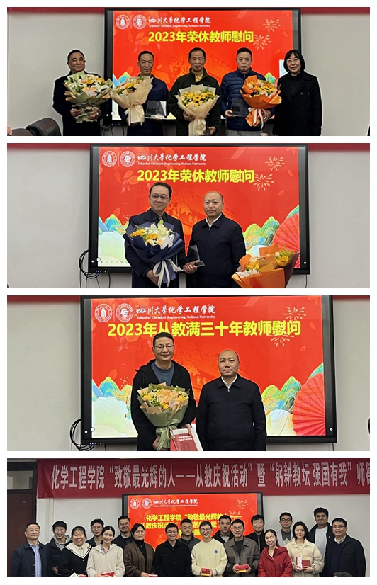 为深入学习贯彻党的二十大精神,深刻学习领会习近平总书记关于教育的重要论述,2023年12月7日下午,学院在望江校区化工楼开展“致敬最光辉的人”从教庆祝活动暨“躬耕教坛 强国有我”师德专题教育。公司党委教师工作部马涛副部长到会指导,公司党委书记李天友、工会主席穆畅道和学院当年荣休教职工、从教三十年教职工以及新入职教职工等30余人参加此次活动。活动由公司党委副书记兼纪委书记李德富主持。