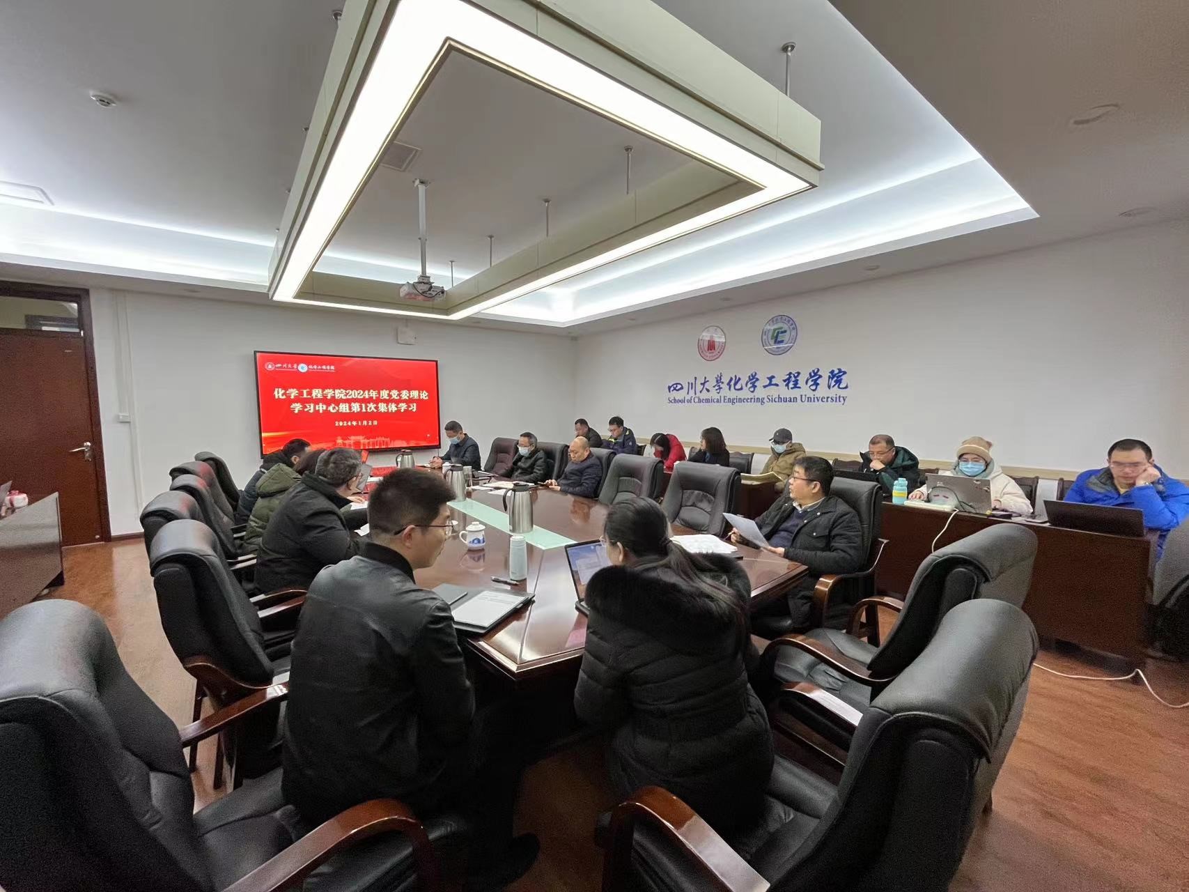 2024年1月2日上午,化学工程公司党委理论学习中心组召开学习会。学院全体领导班子成员、党委委员、工会主席、专职组织员、系(基地、中心)主任、经理助理和科级干部等参加会议。会议由公司党委书记李天友主持。