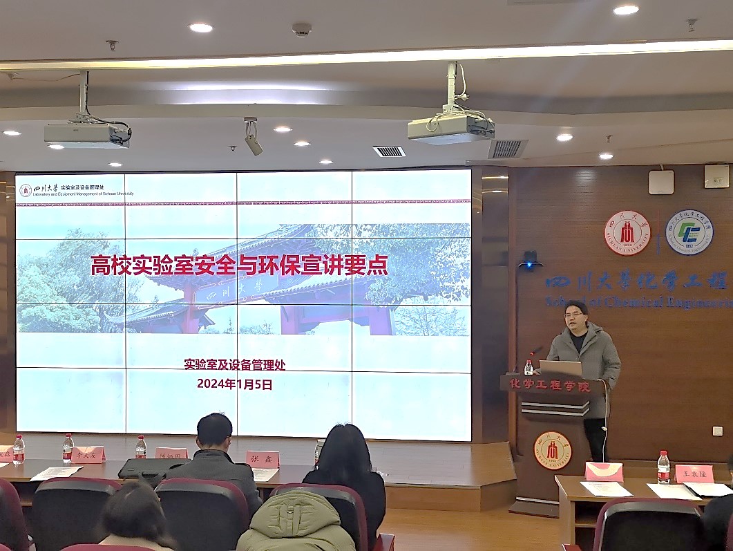 为切实提高公司实验室安全管理水平,确保教学科研实验的安全有序运行,元月5日下午,学院在望江正行楼313报告厅组织召开了2024年度消防与实验室安全培训会。公司党委书记李天友、公司党委保卫部(处)张俊磊副部(处)长、学校实验室及设备管理处陈炳周副处长、学院安全专家蒋炜、欧阳李科、吕松、李眉眉、张鑫、王袁隆等应邀出席,院内各课题组80余名安全员参加了此次安全培训。公司党委副书记兼纪委书记李德富主持会议。