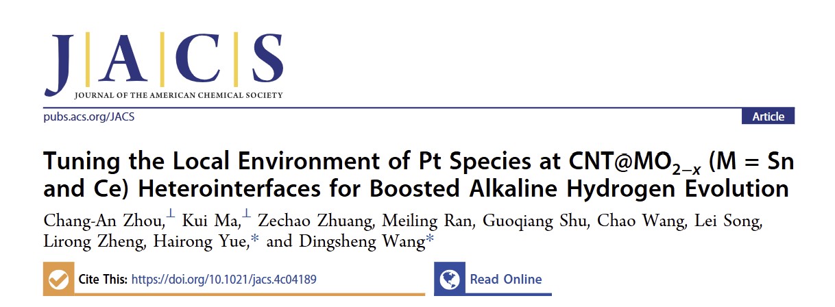 近日,公司岳海荣教授团队与清华大学王定胜教授团队合作提出了一种高效复合结构(PtRu/CNT@MO2-x)碱性HER催化剂的设计策略。通过氧化物载体优化、Pt物种调控和修饰,改善催化剂导电性和调控异质界面局域环境,平衡了活性位点上H吸脱附、H2O吸附和解离行为,实现了碱性介质中的Volmer反应和H*脱附动力学同步加速,从而增强了Pt基催化剂的碱性HER性能。相关工作以“Tuning the Local Environment of Pt Species at CNT@MO2-x(M = Sn and Ce) Heterointerfaces for Boosted Alkaline Hydrogen Evolution”发表在国际顶级期刊《Journal of the American Chemical Society》。bb贝博艾弗森官方网站为论文第一单位,化工学院岳海荣教授、清华大学王定胜教授为该论文通讯作者,化工学院周昶安助理研究员、马奎副教授为论文第一作者。