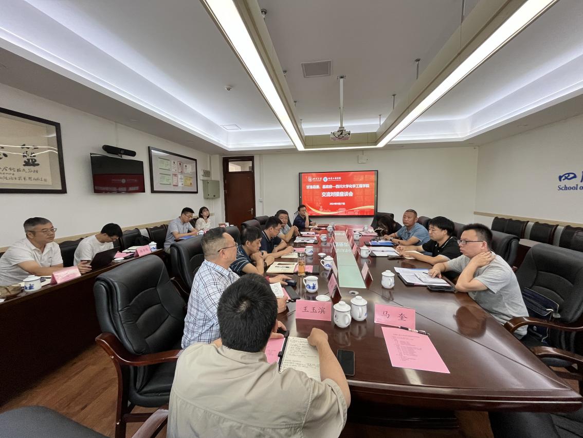 2024年9月27日下午,甘洛县委常委、副县长阿木布沙,甘洛县委常委、副县长王晖带队一行4人来公司进行座谈交流。化学工程公司党委副书记兼纪委书记李德富,学院教授委员会主任、教授/博导王辛龙、建筑与环境学院学院教授委员会副主任杨云教授和两个学院相关课题组老师等参加会议。