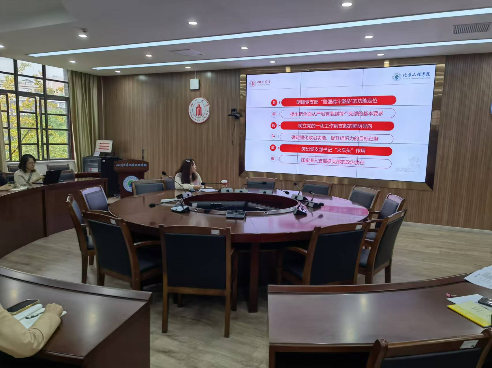 为深入学习贯彻党的二十届三中全会精神和全国教育大会精神,切实提升党支部组织力和战斗力,2024年11月8日8,bb贝博艾弗森官方网站在望江校区化工楼312会议室组织开展党支部书记工作例会暨2024年支部书记、委员工作规范化第一期专题培训会。公司党政办公室主任李晓燕老师、党建管理科科长高敏老师和全体党支部书记、支委等参加会议。