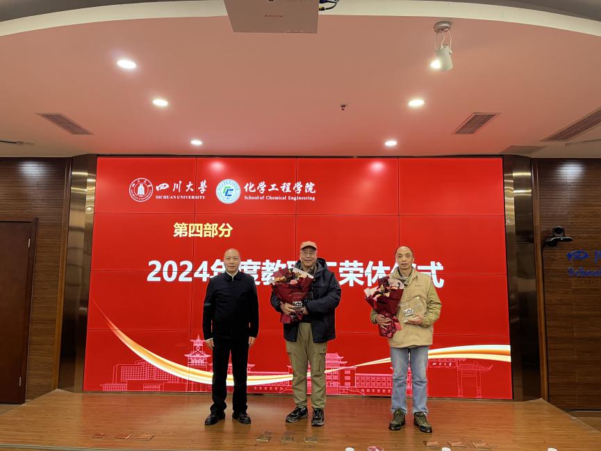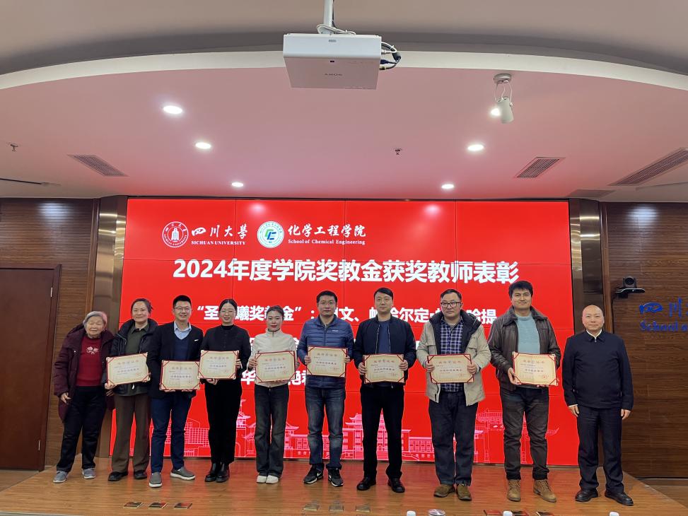 杰出教授钟本和与学院领导一起向获得2024年度学院圣华曦奖教金、宜化奖教金、邦普奖教金、云图奖教金的18位教师颁发了荣誉证书。