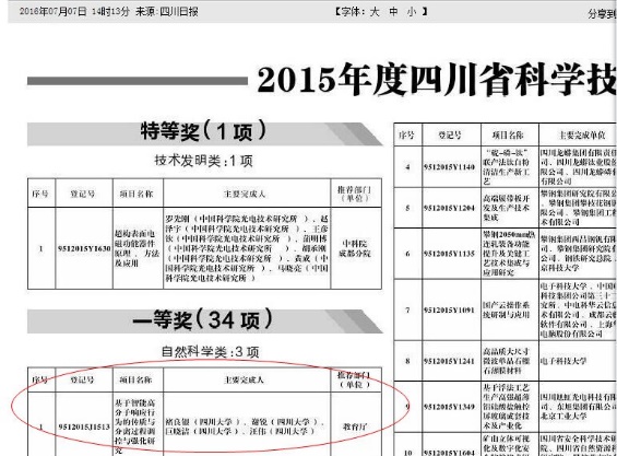经省科学技术奖励评审委员会严格评审、省科学技术奖励委员会审定,授予267项成果四川省科学技术进步奖。学院褚良银教授团队研究成果“基于智能高分子响应行为的传质与分离过程调控与强化研究”获得四川省科技进步奖一等奖。