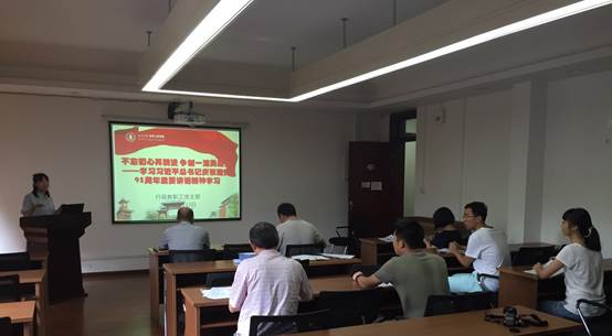 最后高敏书记总结到,通过对习近平总书记“七一”讲话的深入学习,我们要从党的光荣历史中汲取精神力量,牢记强国兴学的伟大使命。同时应结合各自的岗位工作,不忘初心,勇于担当,真诚认真地服务于广大师生,为建设“一流大学和一流学科”而不懈努力。