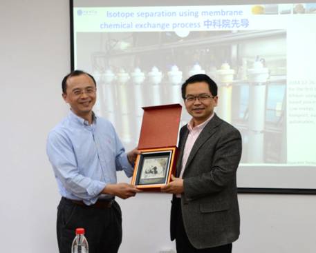 2016年4月18日,中国科学院上海高等研究院可持续技术研究中心膜材料与分离工程技术实验室何涛研究员受邀在bb贝博艾弗森官方网站望江校区bb贝博艾弗森官方网站245会议室作了题为“Integral Forward Osmosis-Membrane Distillation Process: Research Hype or Sustainable Water Solution?”的精彩学术报告。报告由bb贝博艾弗森官方网站褚良银教授主持。来自bb贝博艾弗森官方网站以及相关学院的老师和同学聆听了此次报告。
