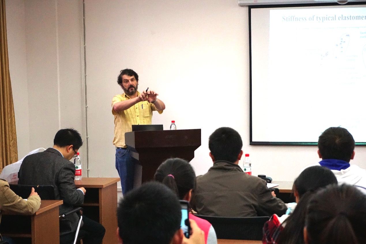 2015年11月23日上午10:00,美国科学院院士,美国科学与艺术学院院士,美国哈佛大学教授David A. Weitz 为公司老师和员工带来了一场以“New Routes to Microgel Fabrication” 的学术讲座。化工学院经理褚良银教授主持了此次学术报告。褚良银经理首先对David A. Weitz 做了简要介绍。Weitz教授对bb贝博艾弗森官方网站化工学院的邀请,以及各位老师和同学们的出席表示感谢,他简要介绍了他们课题组及其成员的研究工作,然后从”new soft elastomer materials”, ”new materials formulation”以及”asymmetric vesicles”等三个方面介绍了在软材料科学领域内的最新研究成果。报告结束后,David 鼓励大家积极提问,并对每一位听者的问题进行细致的解答。最后,大家带着问题和思考,用掌声感谢David的演讲,报告在轻松活跃的气氛中结束。