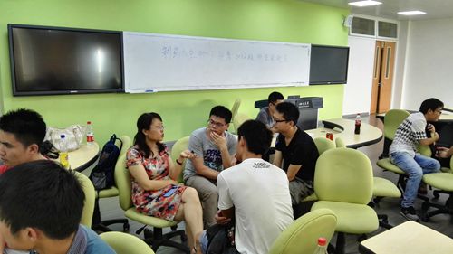 此后,师生移步综合楼B405。在小班化教室里,老师和同学们围坐在一起,畅快地交流。从学业到事业、从学校到人生,老师们都耐心地解答同学们的疑问。同学们对我系的科研与课题组有了更充分和直接的了解,许多同学们也表示要争取机会加入团队,使自己得以进一步提升。