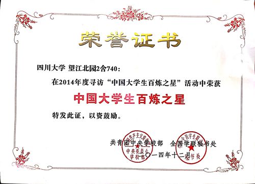 日前,化工学院2014级研究生赵磊、李星、余睿、邹达所在的望江校区北园2舍740被评为“中国老员工百炼之星” 寝室。