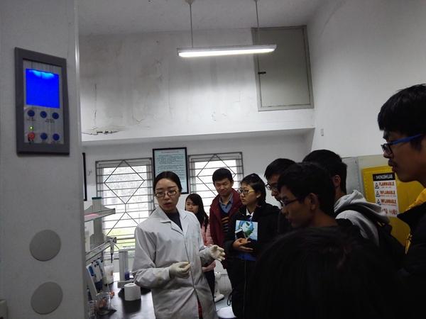 吴潘老师详细介绍了仪器分析设备的简要原理及其应用,设备包括红外光谱仪、原子吸收分光光度计、气相色谱仪、高压液相色谱仪、微机热差天平,发射光谱仪、激活激发设备以及SEM扫描电镜设备等高精密仪器。这些精密仪器的使用,为化工科研和教育提供了强大保障。学院公用仪器平台的搭建,硬件设施的完善使得同学们连连赞叹。