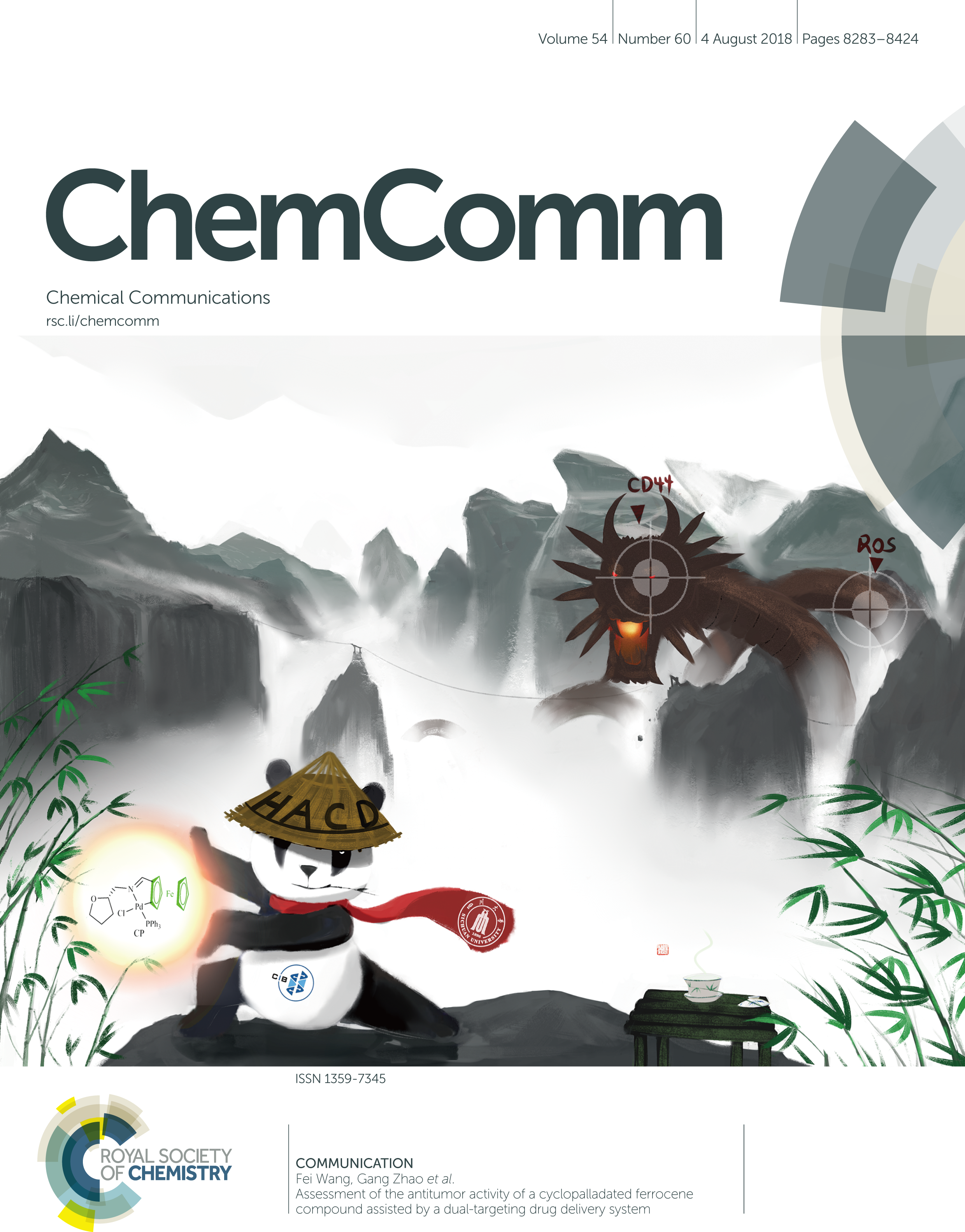 近日,bb贝博艾弗森官方网站化工学院赵刚教授课题组在平面手性二茂铁环钯化合物抗肿瘤活性研究领域取得新突破,设计并制备出了高效低毒且具备靶向性的智能抗肿瘤纳米颗粒。相关成果“Assessment of the Antitumor Activity of a Cyclopalladated Ferrocene Compound Assisted by a Dual-targeting Drug Delivery System”发表在Nature Index期刊《Chem. Commun.》(影响因子6.29),由于其新颖的设计和良好的抗肿瘤活性被该杂志选为封面文章(Front cover)。化工学院2017级博士研究生龚贵东为该论文第一作者,赵刚教授为通讯作者,bb贝博艾弗森官方网站化工学院为该论文的第一作者单位。