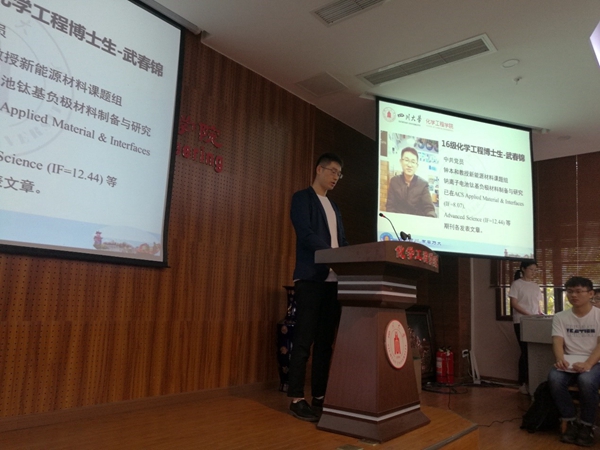 随后,高年级员工代表2016级博士武春锦与新生们分享了他的科研经验。他强调,做科研要沉得下心,且要虚心向导师与师兄师姐请教,认真研读文献,做好文献记录。2018级新生代表杨柯表达了对研究生新生涯的憧憬,并感谢能在bb贝博艾弗森官方网站学习生活,对未来的科研道路也有充足的信心。