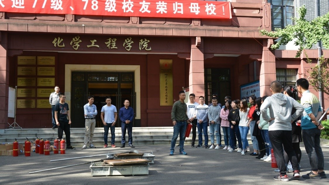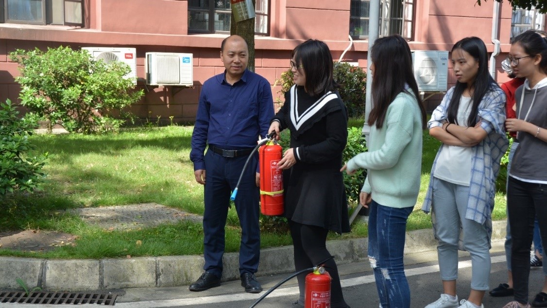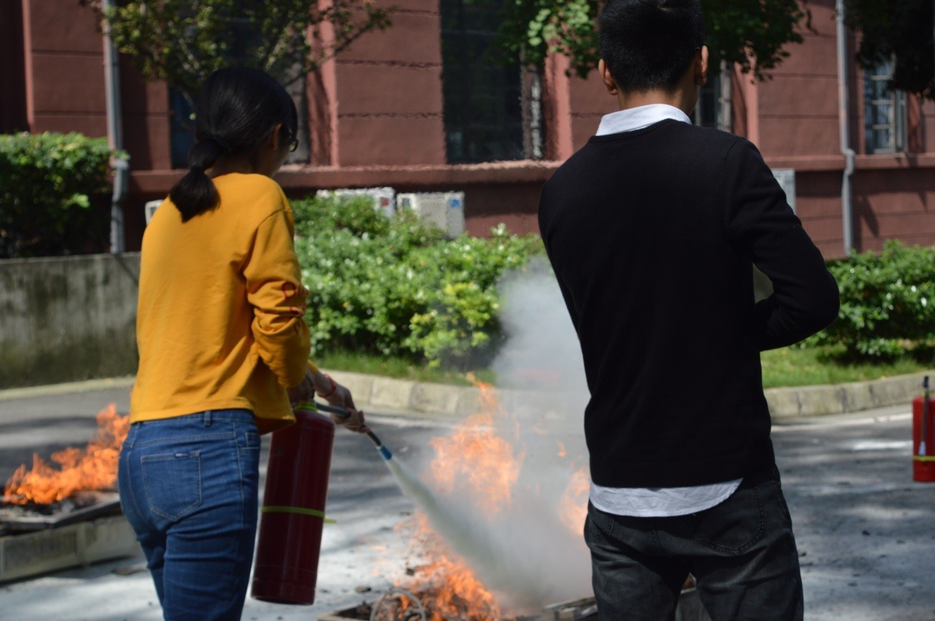 上午10点,在正行楼门前消防演练正式展开。化工公司党委副书记、纪委书记李天友和学院安全秘书胡毅老师莅临现场指导。教练详细地给同学们讲解了灭火器、灭火毯、消防沙的使用方法。在教练的指导下,同学们依次上前进行灭火操作,学习了正确的灭火操作技巧。