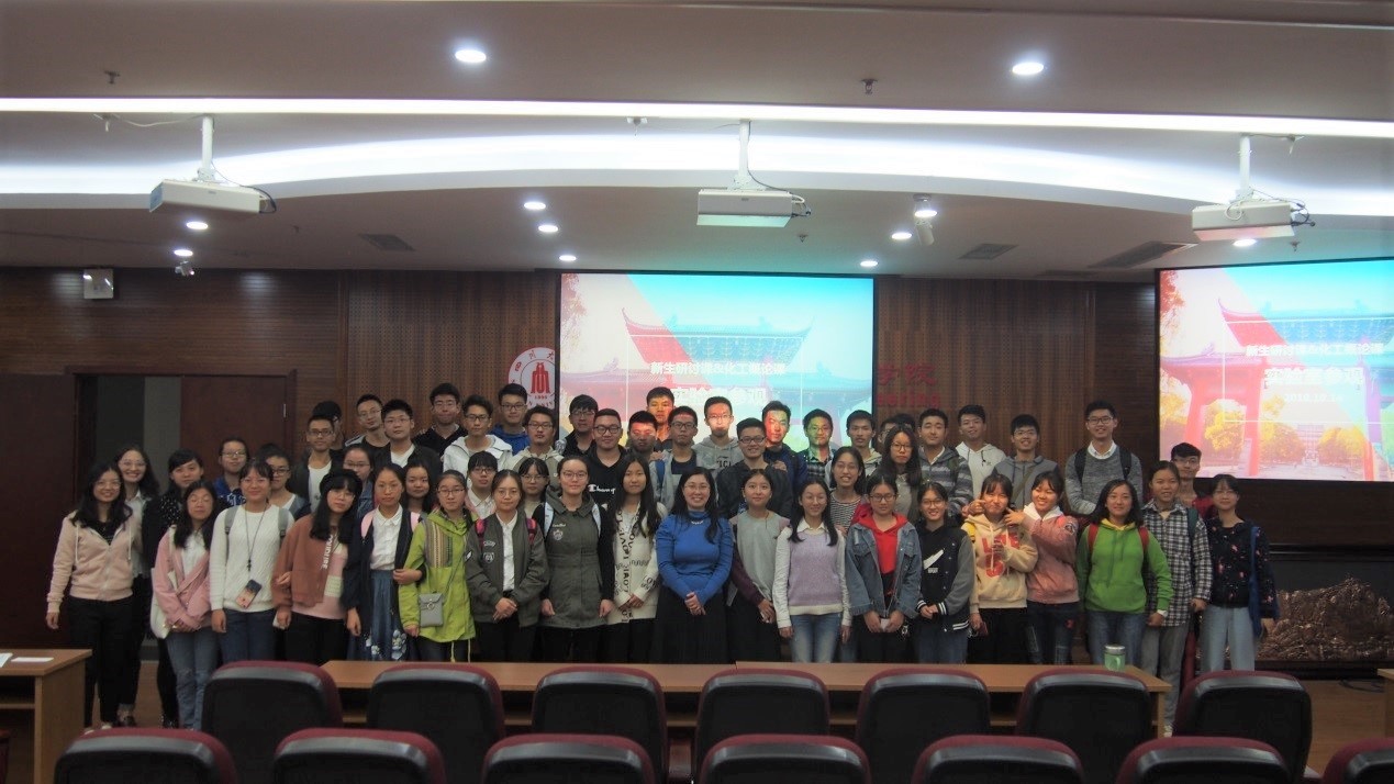 2018年10月14日,学院50余名2018级化工与制药专业的大一新生受邀来到bb贝博艾弗森官方网站望江校区化工楼参观学习。本次参观活动是由新生研讨课和化工概论课任课老师褚良银教授、穆畅道教授、谢锐教授和汪伟副教授发起,由谢锐教授和汪伟副教授组织、来自膜科学与功能材料研究室的“金牌讲解员”刘露月博士、师璐硕士、尹微虹硕士进行引导和解说,赵晓萌硕士和李新娇硕士负责签到和拍照。