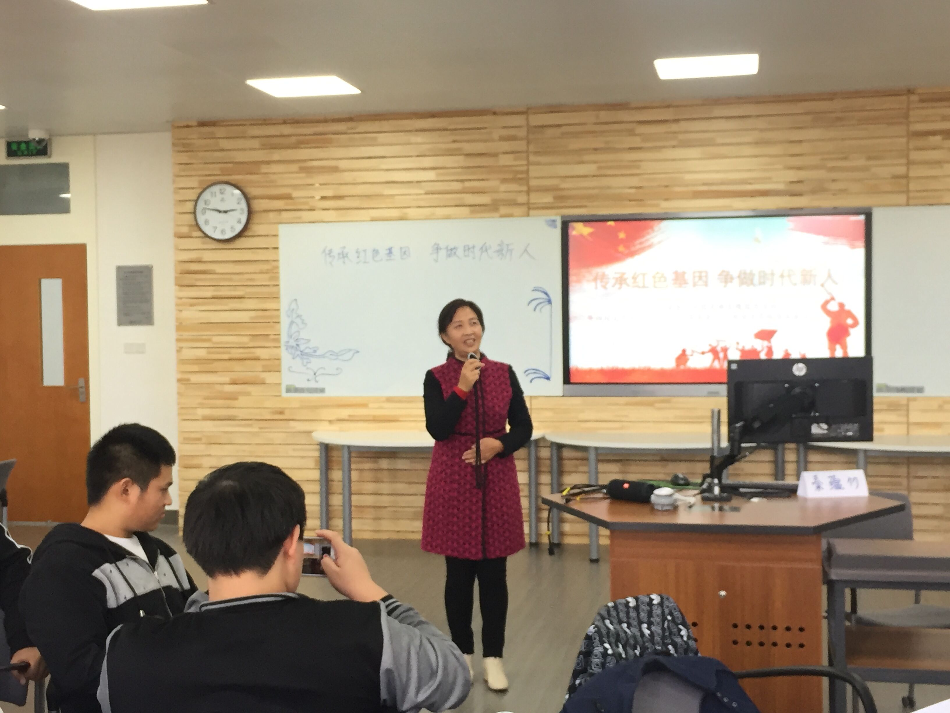 看过同学们青春激情的表演,关工委的老师们也响应同学们的邀请为同学们带来了朗诵和歌唱。李川娜老师为大家深情朗诵她入团时的宣誓词。尽管时间已经过去很久了,但是李老师一直把宣誓词牢牢的记在了心间。王徳庆老师声情并茂的演唱了革命歌曲《在贝加尔湖的草原上》,追忆了革命烈士的英勇精神。