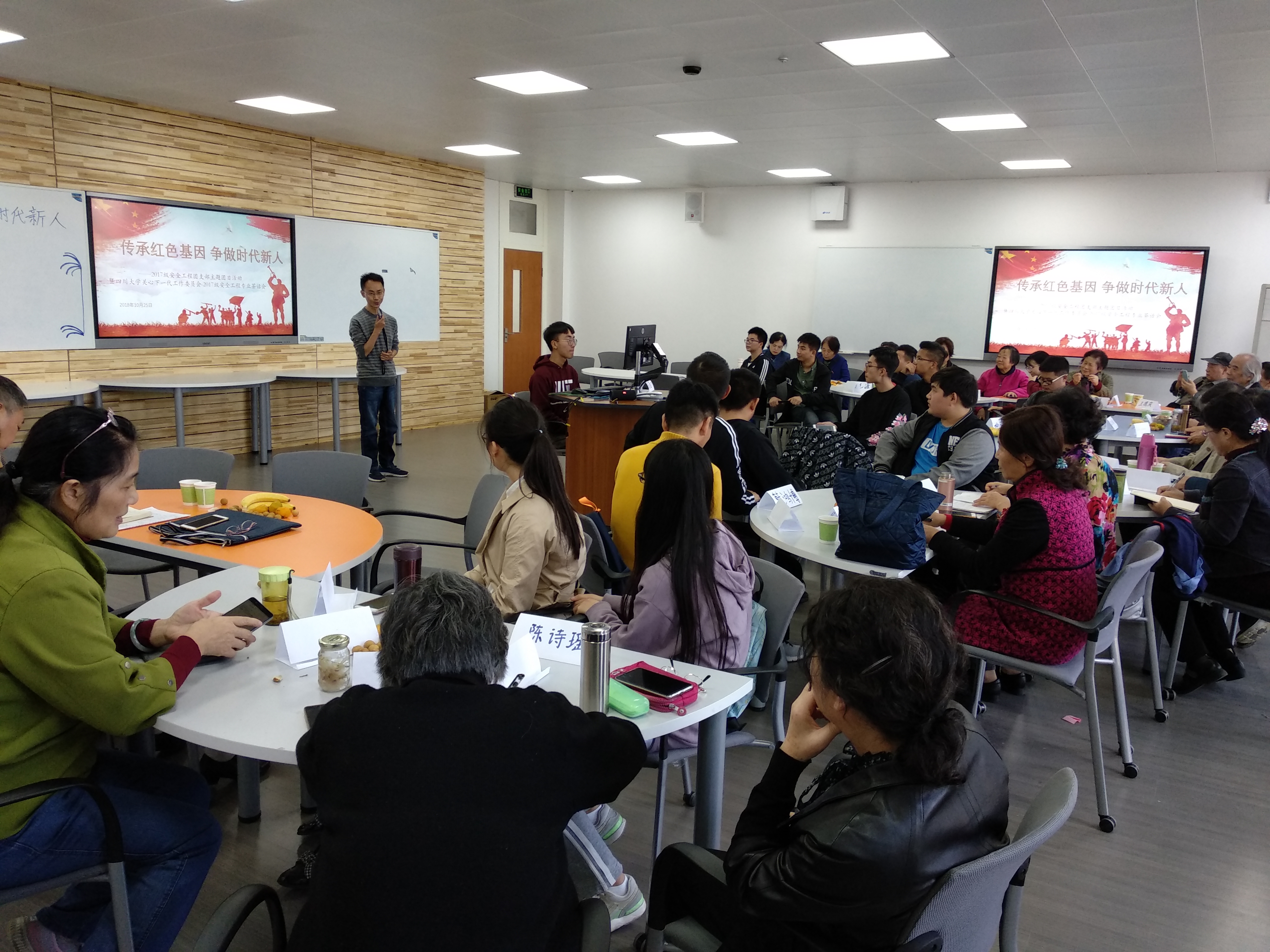 2018年10月25日下午风和日丽,校、院关心下一代工作委员会与2017级安全工程茶话会,暨bb贝博艾弗森官方网站2017级安全工程“传承红色基因,争做时代新人”主题团活在江安校区第一教学楼D座203室顺利举行。到场嘉宾有校、院关工委曹养书老师、徐赐宁老师、梁明征老师、傅运清老师、秦自明老师、李存厚老师、杨传云老师、王德庆老师、曾志源老师、张慎语老师、孔古娅老师、罗先华老师、徐怡老师、朱立嘉老师、赵红卫老师、方为茂老师、付晓蓉老师、傅师申老师、侯筑老师,bb贝博艾弗森官方网站教导员李川娜老师,17级安全工程班主任李万舜老师、17级辅导员喻可乐老师。17级安全工程班的各位同学们怀着饱满的热情参加了此次活动。