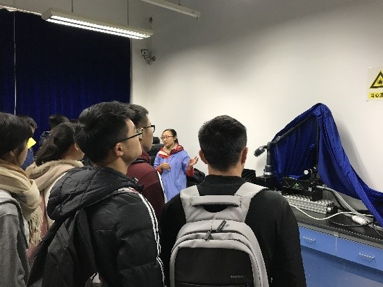 最后,周强、王袁隆等老师带领同学们走进专业实验室,向同学们讲解相关设备的工作原理及工程应用。在外压失稳实验装置前,讲解老师将外压容器的“临界压力”与蛟龙号下潜深度联系起来;在机械振动与动平衡实验装前,周老师介绍了动平衡的基本概念与用途,以汽车轮毂为切入点讲解动平衡的意义等。参观过程,老师深入浅出的讲解引起了同学们的浓厚的兴趣。