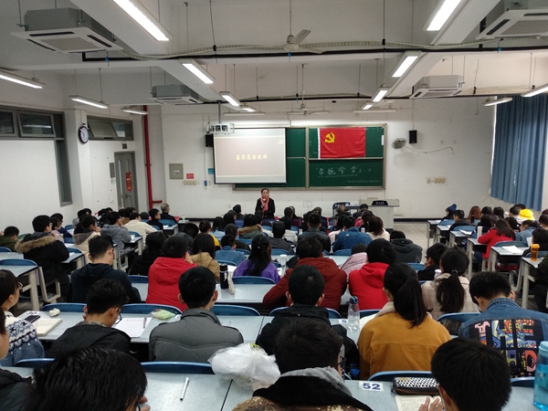 2018年12月2日上午9:30,bb贝博艾弗森官方网站第五期“求是学堂”第二讲在江安校区综合楼C座403教室开展。本次课程邀请到bb贝博艾弗森官方网站关心下一代工作委员会(简称校关工委)素质教育部副部长赵雪琴老师和秦自明老师,为140余学员授课,旨在通过优秀老党员分享入党经历和为学员们答疑解惑,坚定广大学员的入党信念和端正入党动机,指明学员们奋斗的前进方向,从而使其珍惜入党机会。到场的嘉宾有校关工委办公室主任汪朝清老师,以及校关工委党建部、素质教育部和院关工委的11位老师。2017级辅导员喻可乐老师主持本次活动。